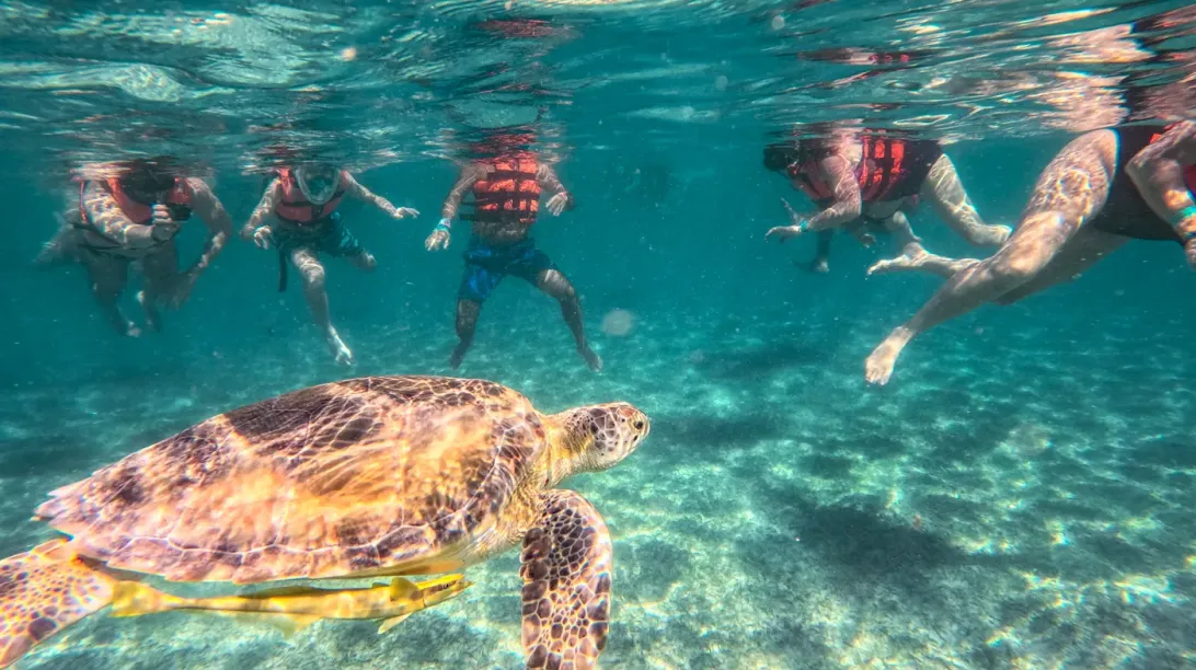Prepárate para un día lleno de maravillas en la Bahía de Akumal, el primer destino turístico de la costa de la Península de Yucatán. Conocido como el "lugar de tortugas" en lengua maya, Akumal te invita a sumergirte en sus aguas cristalinas y explorar uno de los tesoros más grandes de la naturaleza: la segunda barrera de coral más extensa del mundo. Aquí, podrás deleitarte con la vista de peces de todos los colores mientras las tortugas nadan a tu alrededor en su hábitat natural. Una Experiencia Guiada
