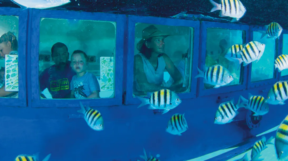 Nuestro tour ofrece comodidad y diversión para toda la familia. Disfruta de un paseo en submarino climatizado con guías bilingües que te revelarán los secretos del océano. Además de la oportunidad de hacer snorkel en el arrecife con sesiones ilimitadas, relájate en nuestra plataforma flotante con bebidas incluidas: cerveza, agua y refrescos, ¡perfectas para refrescarte entre inmersiones!