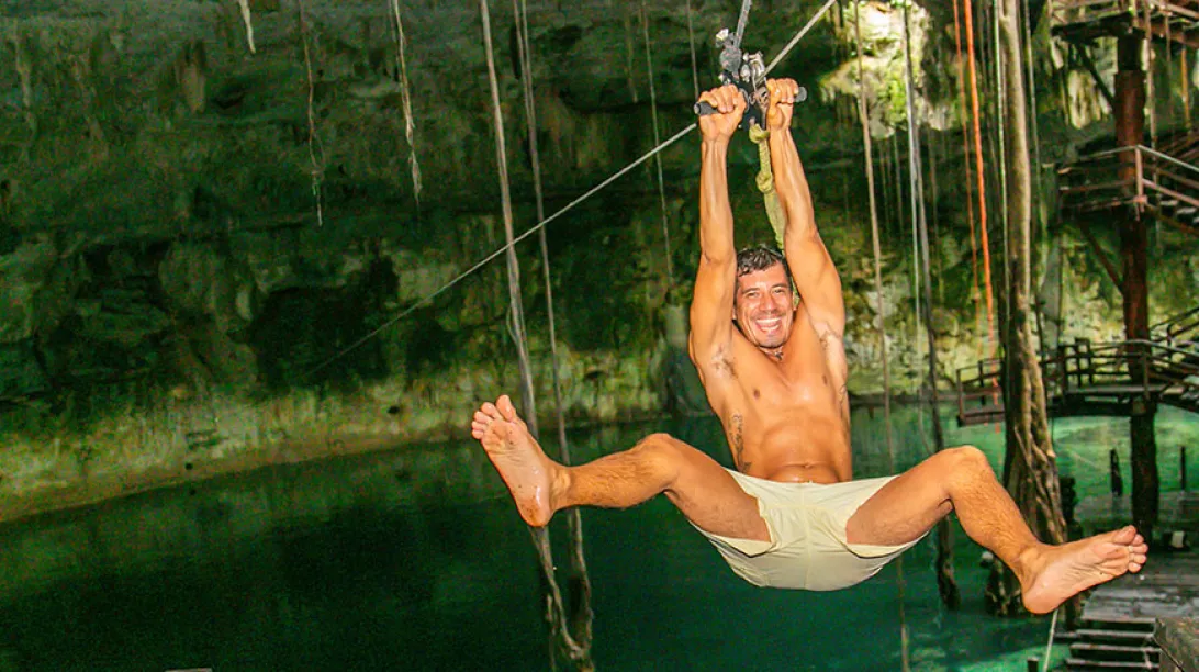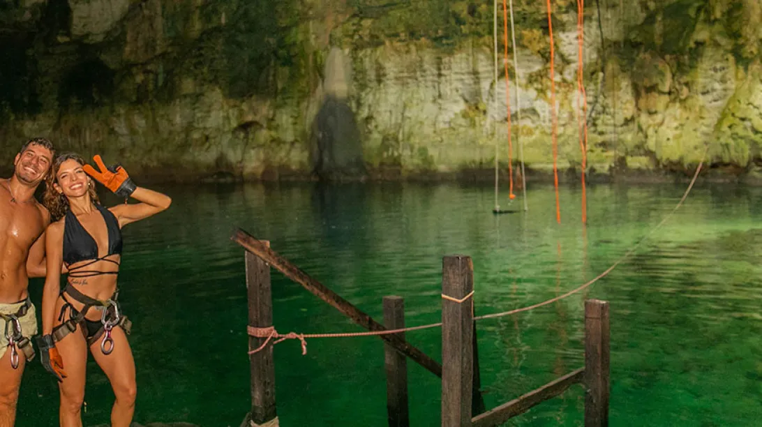 Para culminar esta increíble experiencia, sumérgete en un cenote ancestral, un lugar místico que ha sido y sigue siendo una fuente vital de agua para la región. Llénate de energía en este entorno único. Vive la emoción del rappel al descender al interior del cenote, y si eres amante de la aventura, diviértete con la tirolesa y las lianas. Si prefieres algo más relajante, flota en sus aguas refrescantes y deja que tus preocupaciones se desvanezcan.